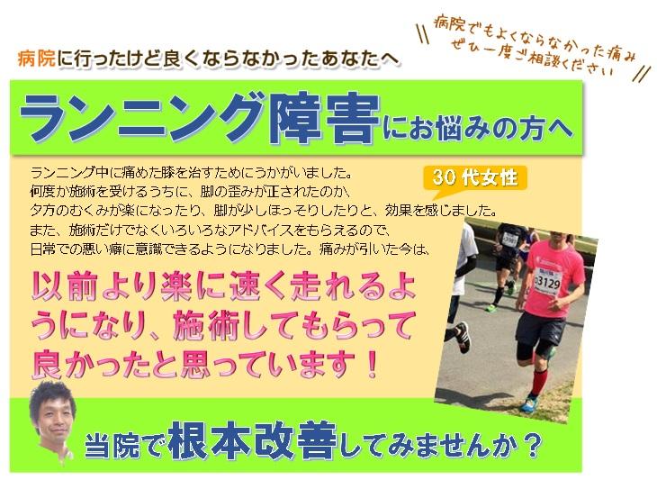 ![]() ランニング障害にお悩みのあなたへ ランニングとは、 脚を交互に出して進んでいくという 単純な動作の繰り返しです。 ランニング障害はそんな単純な繰り返しによりおこる障害です。 「間違った動き」を積み重ねてきた結果、痛みとして症状が出てきてしまうのです。 ここではそんな原因と対処法について解説していきます。  ランニング障害とは  ランニング障害とは、 左右の脚を繰り返し動かし進んでいくことの「間違った動き」の積み重ねが負担となって現れる障害です。 ここでは主なランニング障害についての原因と対処法について紹介していきます。 【腰の症状】 ・骨盤が不安定による腰痛 【膝の症状】 ・膝蓋軟骨軟化症(しつがいなんこつなんかしょう 膝のお皿関連の症状) ・膝蓋靱帯炎(しつがいじんたいえん ジャンパー膝 膝のお皿の下の症状) ・タナ障害(たなしょうがい お皿の内側の症状) 【膝から下の症状】 随時更新していきます。 2024/09/25更新 ランニング障害の原因 ランニング障害の原因として、多くの方にとって共通のとなっているある癖があります。 ある癖とは? 膝下の骨(下腿骨)がももの骨に対して外側にねじれてしまっていることです。 専門用語でいうと「下腿外旋変位」と言います。 下の写真を例にして説明していきます。 ![]() しゃがみ込みテストです。 しゃがんだ時の足の状態によってどのような問題があるのかを見ていくテストです。 ・左の写真はきれいにしゃがみこんでいます。 ・真ん中の写真は膝に対して足先が外側を向いてしまっています。 ・右はしゃがみ込むことができていません。 ここで言えることは、 しゃがんだときに膝に対して足先が外側に向かってしまう場合(足の指先に対して膝が内側に入ってしまう場合)は、膝下の骨の外ねじれ(下腿外旋位)という状態になります。 この状態はランニングでの足接地時に膝が内側に入りながら走っている可能性がある状態です。 これは重心が足の内側にかかってしまうため機能的な偏平足な状態でもあります。 また右側の写真はしゃがみ込むことができないので、足首を反る動作に制限があります。 写真では踵を上げていますが、足首が固いと、踵をつけてしゃがみ込むときに 足の指先を外側に向けて代償してしゃがまないとならないため、結果として足のアーチをつぶすことにつながります。 こんな座り方をされていませんか? 女性によくみられる座り方ですね(女の子ですみません)。 ![]() はじめは使い方のクセによる外旋(膝下の骨の外側へのねじれ)ですが、 これに気づかずにその癖のまま使い続けることで外方変位へと移行していきます。 年を重ねた時の膝の痛みとして病院で診断される「変形性膝関節症」への道、まっしぐらですね。 その他の原因     ここまで膝下の骨の外ねじれ(下腿外旋位)についてお話してきましたが、ねじれてしまう原因は他にもあります。 片脚立ち時に使われる「中殿筋」がうまく使えていない場合です。 うまく使えていないとこうなります。 ![]() 右の写真は体重をかけている右脚に対して、骨盤は反対側に落ち込むように傾いています(左の骨盤が右に対して低い)。 これは、片脚立ち時で活躍したい中殿筋がうまく働いていない状態です。 うまく中殿筋が働いていないから骨盤が反対側に落ち込むように傾く… とも言えますが、 写真の赤丸の位置が脚の軸(緑の線)からずれいることも骨盤が傾く要因となります。 この傾きももしかしたら背骨がずれていることが原因かもしれません。 私たちの体は、一つの歪みがあると全身でかばい合おうとします。 ランニング時に膝が足先よりも内側に入ってしまうといった現象(ニーイントーアウト)があったとしても、そこだけを良くしていくだけは一時的にはよくなっても根本的な改善とはいえず、痛みをぶり返してしまうかもしれません。 長い人生を考えると この根本的な使い方のクセ改めて気づくことが大切ですね。 良い関節の位置関係に整え、間違った動きを変えることによって スポーツパフォーマンスやレクリエーション、日常の生活などをよりよくしていけることとなることは間違いなしです。 北千住、西新井、綾瀬、草加、越谷、松戸、柏、八潮、流山など お体の不調やスポーツパフォーマンスの不調でお悩みの方は、 北千住駅から徒歩3分、22時まで行っている sports&careスタジオ カラダプラス(パーソナルトレーニング/整骨院)にご相談ください。  |