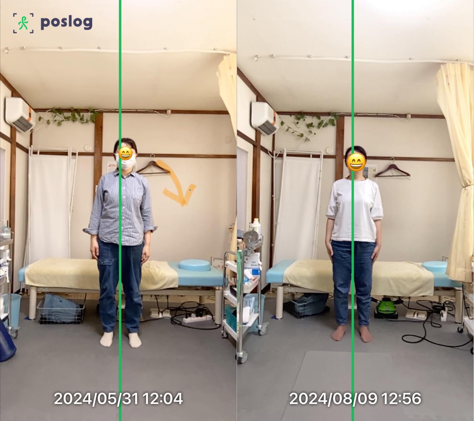 ![]() 間違った動きを変えて症状にアプローチした症例 ~歩行時の母趾球の痛みへのアプローチについて~ 今回紹介するのは、 「足の親指の付け根である母趾球の痛み」についてです。 この症状に限らずですが怪我を除いた「痛み」という症状は患部に負担をかけ続けた結果、です。 かけ続けている負担を取り除かなければ、根本的に良くはなりません。 今回の症例は、 患部に負担がかかり続けていた”原因”を改善し、患部への継続的刺激を緩解させました。 主訴 左の母趾球に歩行時の痛みがあるとのことでした。 ![]() 母趾球は痛くない方と比べて患部の痛めているところは肥厚(患部の組織が分厚くなる状態)していました。 押すと痛みが走ります。 間違った動き ![]() ・体幹の左側屈変位による左下肢荷重が強い(左写真) ・スクワット時のニーイントーアウトが顕著(右写真) ・座位時に右坐骨荷重のため腰椎は右凸変位 アプローチ 徒手で膝関節、腰部をリリース(組織間リリース含む)し、 間違った動きを変えるトレーニング では、 下腿内旋EX(解説入り動画)と ニーアウトスクワット(解説入り動画)でニーイントーアウトにアプローチ。 経過 痛みは3回目には収まっており、 現在は間違った動きを変え、いい状態を維持するために間をあけながら通院しています。 夏休みに入り子供が自宅にいるため今回は1ヵ月ぶりに来院も、セルフエクササイズを続けていたようで初回以来に撮影しましたが、まずまずでしたね。 立位姿勢では、左に傾いた姿勢もまっすぐになりました。この写真ではわかりづらいですが、胸を張りやすくなったので猫背姿勢もだいぶ良かったです。 ![]() 今度は腰を反る動作です。 背骨のねじれが解消し、胸も張りやすくなったことから後ろに反りやすくなりました ![]() 画像を見ることで 改めて”間違った動きを変える”、そしてそれを”維持していくこと”の 価値を感じていただけたかと思います。 なにより私自身も嬉しいです。 当院では運動の処方箋を出しています。 エクササイズというお薬(処方箋)ですが、こういった自分の健康は自分で守る”セルフコンディショニング”が当たり前の社会にしていきたいと、 動画を撮り、動きの癖などの現状を知ってもらい、 そして体の変化を実感していただける取り組みをしています。 この取り組みは、 同じ症状を繰り返さないためにも、 またもし仮に症状が再発したときに処方したエクササイズを行うことで、 症状の鎮静化を自分自身でできることにもつながりますね。 不健康寿命を伸ばす唯一の方法は運動です。 間違った動きによる痛み (代償動作)は代償動作改善することでよくなります。 そのためにはセルフコンディショニングは必要不可欠なんだよね。 でも姿勢や動きが歪んでいるのって分かりづらいから POSLOGによる代償診断をして”症状の原因の見える化”をしています。 北千住、西新井、綾瀬、草加、越谷、松戸、柏、八潮、流山など お体の不調やスポーツパフォーマンスの不調でお悩みの方は、 北千住駅から徒歩3分、22時まで行っている sports&careスタジオ カラダプラス(パーソナルトレーニング/整骨院)にご相談ください。 |