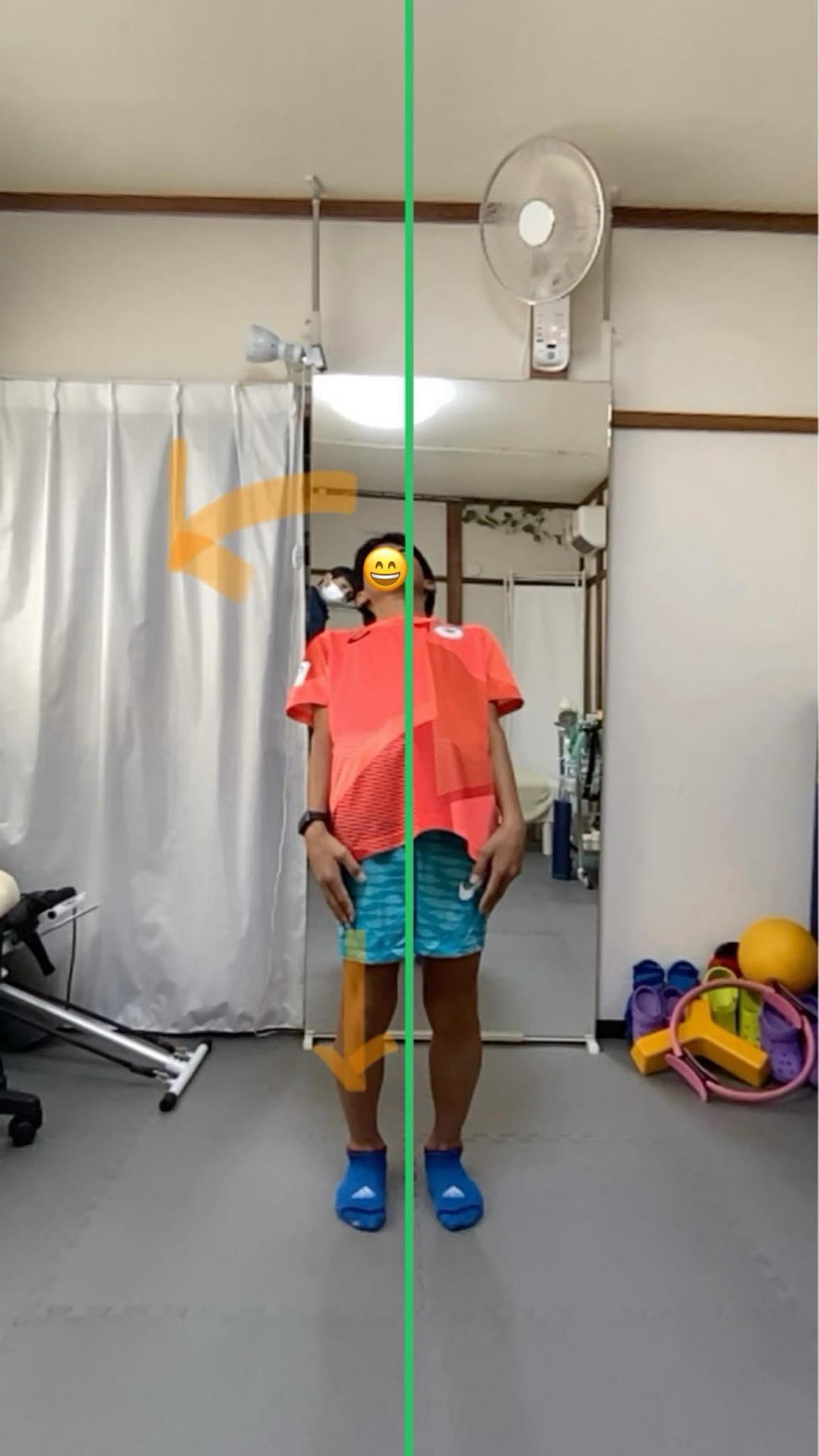 ![]() 間違った動き変えて症状にアプローチした症例 ~短距離選手のふくらはぎの痛み~ 今回紹介するのは、 「短距離選手のふくらはぎの痛み」についてです。 この症状に限らずですが怪我を除いた「痛み」という症状は患部に負担をかけ続けた結果、です。 かけ続けている負担を取り除かなければ、根本的に良くはなりません。 今回の症例は、 患部に負担がかかり続けていた”原因”を改善し、患部への継続的刺激を緩解させました。 主訴 陸上競技100mの短距離選手。 症状は右ふくらはぎが大会に出て全速力をするとつることが多く、痛みを引きずりしばらく走れなくなるとのこと。 そのため全速力で走るのが怖いというのが主訴でした。 間違った動き 骨盤をみると左荷重に変位していましたが、動いてもらうと右脚を頼りにする使い方をしていました。 後ろに反る動作では、上半身は右に傾き右脚への荷重が顕著。 ![]() 右回旋に比べて、左回旋時の骨盤は右にスライドし右脚荷重が顕著。 また腰の反りも過剰でした。腰痛なども起こりやすくなりますね。 ![]() ・片脚スクワットでは、 左脚を行うとは骨盤が反対側に落ち込む、またグラつき、不安定でした。 右は安定して行えてました。 ![]() また腰が痛くなることが以前あったようなので診てみると、 ・腰部は左の張りが強い ・椅子座位での回旋は左優位 ・座位での荷重側は左 でした。 一日の中で一番長くしている姿勢である座位では、左荷重なので骨盤は左荷重になる歪みがあり、 動くと上半身の質量中心が右に変位すること、また左脚の片脚スクワットの不安定さから右脚を頼りにした走りとなってしまった結果の症状と考えました。 【少し細かく】 上半身質量中心とは、第7胸椎~第9胸椎あたりで、剣状突起(みぞおち)の付近にあり、 上半身質量中心の側方変位がある場合(今回は右に変位)、変位側である右脚への荷重量が上がります。 すると、変位側(今回は右脚)への負荷が生じやすくなります。 アプローチ 徒手で胸郭、骨盤をリリース。 患部としては、 SLRにて健側と比べて、ステッチ感より違和感が膝窩からふくらはぎにかけて出現。坐骨神経に絡む組織をリリース(組織間リリース含む)しSLRでの違和感を解消。 運動処方は、 姿勢改善として、 経過 1週間後の来院時には痛みなく走れました、と報告と受けました。 間違った動きである「重心が症状部に偏る使い方」を修正し、痛みなく走れたという結果により、 今回の推測・分析は正しかったということですね。 ランナーの坐骨神経痛の多くはこのパターンです。 痛めている方に痛いのに荷重してしまう使い方をしてしまっているんですね。 以下、施術、運動処方による動きの変化です。 ![]() 当院では運動の処方箋を出しています。 エクササイズというお薬(処方箋)ですが、こういった自分の健康は自分で守る”セルフコンディショニング”が当たり前の社会にしていきたいと、 動画を撮り、動きの癖などの現状を知ってもらい、 そして体の変化を実感していただける取り組みをしています。 この取り組みは、 同じ症状を繰り返さないためにも、 またもし仮に症状が再発したときに処方したエクササイズを行うことで、 症状の鎮静化を自分自身でできることにもつながりますね。 不健康寿命を伸ばす唯一の方法は運動です。 間違った動きによる痛み (代償動作)は代償動作改善することでよくなります。 そのためにはセルフコンディショニングは必要不可欠なんだよね。 でも姿勢や動きが歪んでいるのって分かりづらいから POSLOGによる代償診断をして”症状の原因の見える化”をしています。 北千住、西新井、綾瀬、草加、越谷、松戸、柏、八潮、流山など お体の不調やスポーツパフォーマンスの不調でお悩みの方は、 北千住駅から徒歩3分、22時まで行っている sports&careスタジオ カラダプラス(パーソナルトレーニング/整骨院)にご相談ください。 |