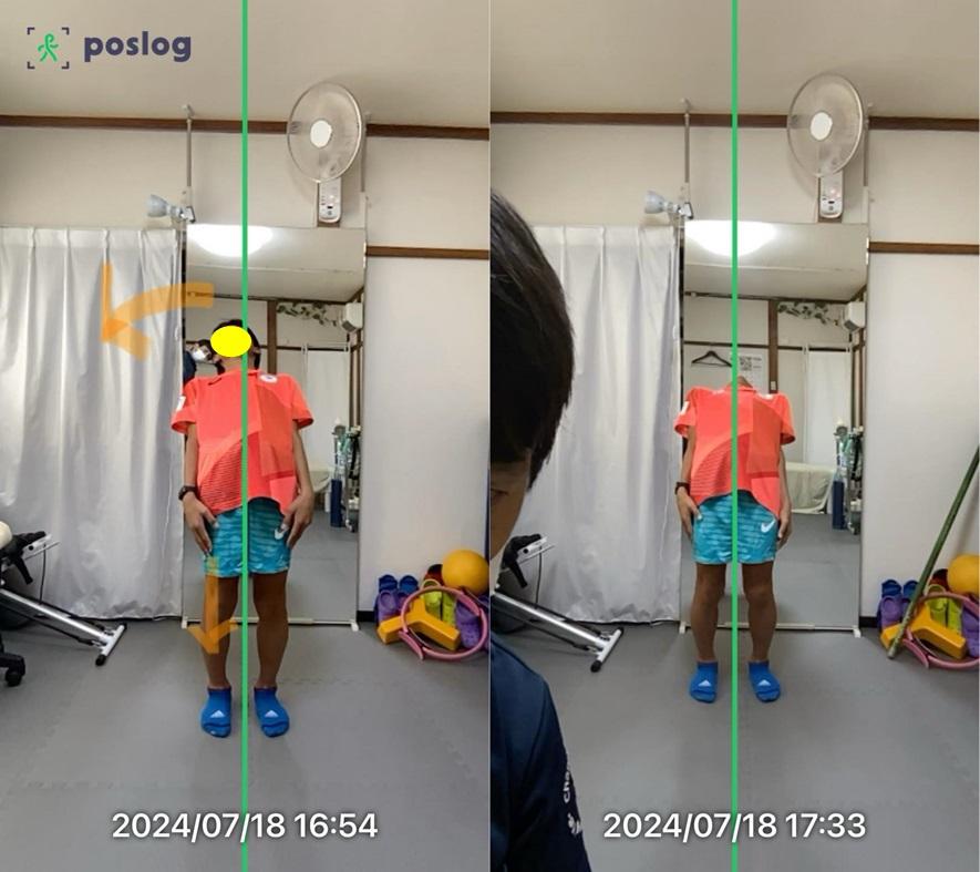 ちょっとの変化が走りを変える!アシスティックストレッチ ~ランニングにおける効率的な姿勢と動きつくりその①~ 今回の戸隠トレイルランレースのアフターイベントとして、 「ちょっとの変化が走りを変える!アシスティックストレッチ」と称して、 障害予防の考え方、そして実際に「緩める・整える」「安定させる」「円滑に動く」までを 「アシスティック」というツールで体感していただく予定です。 今回のコンディショニング講座の内容を作成するにあたり、 走りやすくなるコンディショニング方法についてを4回に分けてお伝えしていきますね。 第一回 障害予防の考え方 第二回 効率よく走るための具体的な「緩める・整える」方法 第三回 良い姿勢を維持する具体的な方法 第四回 効率よく走る具体的な方法 第一回 障害予防の考え方 そもそも、 アシスティックとは? 上半身の伸張性と可動性を向上させるだけでなく、いわゆる良い姿勢である、ニュートラルポジションを維持しながら動く感覚入力から、上半身の動きに対しての動的安定性の向上など、「緩める・整える」「安定させる」「円滑に動く」にアプローチできるツールです。一般的なストレッチでは動かす事が難しい部分を自ら無意識に可動させることができ、怪我の予防、パフォーマンスアップへと導く。日本の水泳界を代表するトレーナー桑井太陽氏が考案しました。 障害予防の考え方 「いわゆる良い姿勢が障害予防には大切です」 「良い姿勢」って漠然と大切なのはわかっているかと思います。 でも、わかってはいても結構ないがしろにされている(大切にしていない)のではないでしょうか?または自分ではいいと思っている、そんな方もいることと思います。 実は相当大切な要素です。 では、良い姿勢、崩れた姿勢により「地面への力の伝わり方」、「片脚立ちの安定性」に大きな影響があるのを体感していきましょう。 動画にしてみましたのでご覧ください。動画を参考にしてぜひお試しくださいネ。 ~動画(作成中)~ 動画ではわかりやすく体感していただくために、大げさに姿勢を崩して行いました。それだけ姿勢が崩れていればそりゃ力が入りづらいでしょう。と思われるでしょう。 でも、実際の臨床では姿勢の崩れ、動きの崩れによりランニング障害と言われる使いすぎによる故障の多くは発症しています。 実際の例としていくつか挙げておきます。 短距離選手のふくらはぎの坐骨神経様症状 ![]() 陸上競技100mの短距離選手。 症状は右ふくらはぎが大会に出て全速力をするとつることが多く、痛みを引きずりしばらく走れなくなるとのこと。 そのため全速力で走るのが怖いというのが主訴でした。 動いてもらうと、痛めている脚に荷重する間違った動きが目につきました。 また痛くない左脚での片脚立ちは不安定で、右脚で接地する時間が長いか、右脚を頼った使い方をしてきたのだろうと推測しました。 アプローチとしては、姿勢の修正と左片脚立ちの安定性の向上を目指しました。三回目の来院では不安なく走れるようになりました。 細かい詳細はこちらをご覧ください。 トレイルランナーの坐骨神経痛 ![]() トレイルランニング愛好家 朝一でのインターバル走にて、左脚の力の入らなくなるような激痛が走り負傷。 しばらく痛みのため、歩くもの足を引きづりながらの生活。 いわゆる坐骨神経痛でした。 痛みが出ない範囲で走っていたが、負荷が高くなると痛みが再発を繰り返していたようです。 写真を見るとわかるように、 振り返り動作では痛めている左脚に荷重をします。写真は乗せていないですが、立っている時も左荷重姿勢で左脚を頼った使い方をしていました。 アプローチとしては、 運動療法中心で、右荷重が不得意だったのでしっかりと地面を押せるようエクササイズ提案をしました。 この方は長らく痛みをわずらっていたので、はっきりとした「痛み」は1か月ほどでなくなり、「気になる」、「なんとなく気になる」、「気にならなくなる」に移行していくのに2か月ほどかかりましたが、現在はがっつりと走れるようになったとのことです。 徒手での治療を含めた運動指導により「姿勢」や「動き」が良くなり症状が改善されました。 では、良い姿勢についてお伝えします。 良い姿勢とは 「良い姿勢」とは、横から姿勢を見た時に背骨が自然なS字カーブを描いている姿勢で、「耳・肩・腰・膝・くるぶし」が一直線になる状態を言います。 このS字カーブのことを「ニュートラルポジション」と言います。 「ニュートラル」には「偏らない」「中立的である」「中間的である」という意味があります。 床に寝たり、壁によりかかったりしたときに「後頭部・みぞおちの後ろの背中・骨盤の真ん中の仙骨」の3点が床または壁についていて、腰の背骨が手のひら1枚分反っている状態です。 ![]() スウェイバックはお腹を突き出した猫背姿勢で、多くの方がこのような姿勢かその予備軍です。 また骨盤にもニュート